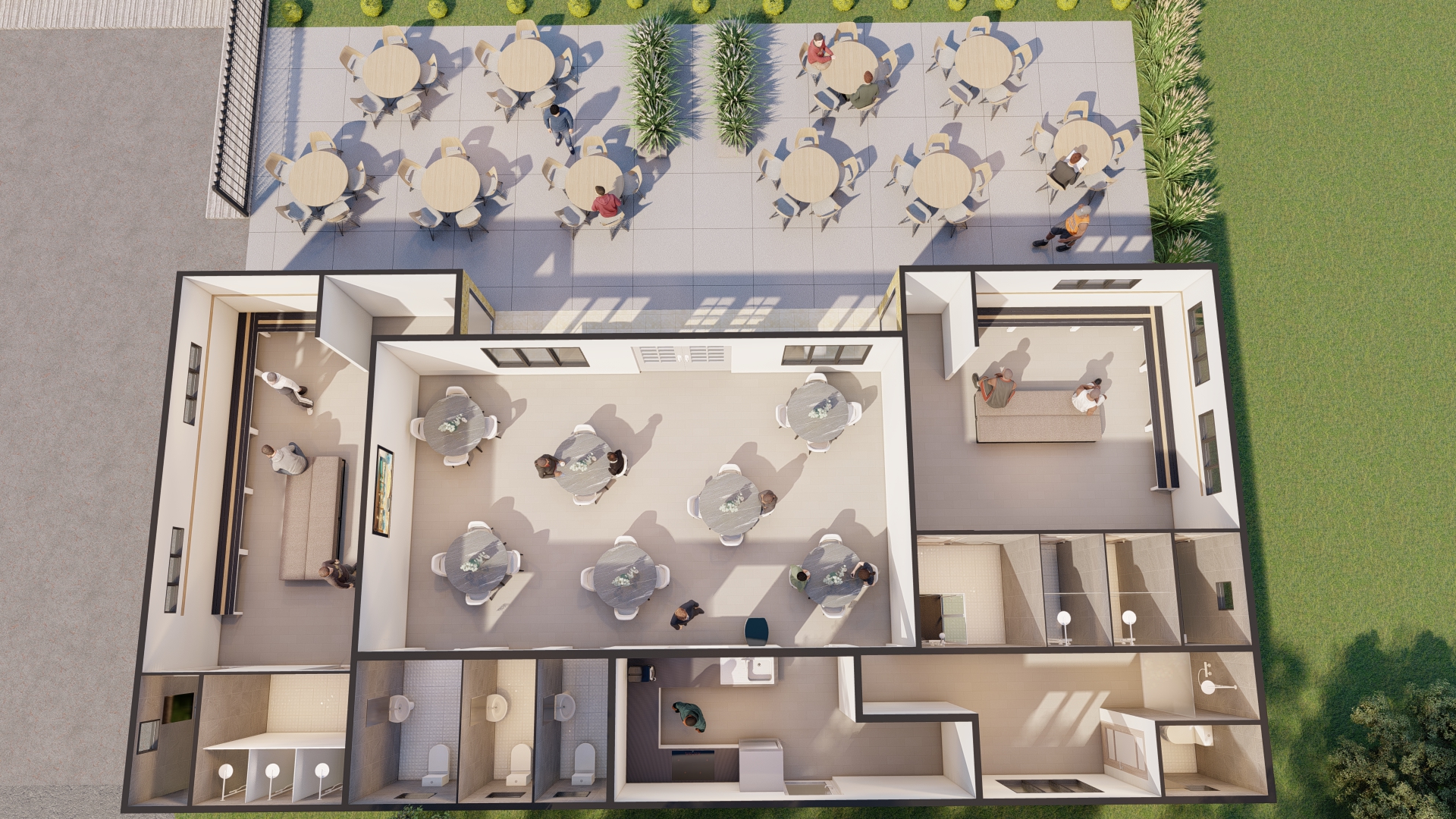 The layout has been designed to meet the ECB's TS5 standard for changing rooms, while providing a good-sized social space and keeping the overall footprint as small as possible.