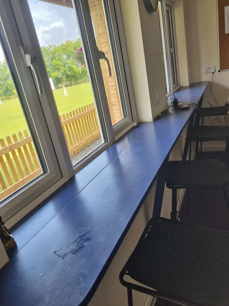 At the front there are high chairs and a shelf to allow viewing of the field in comfort. There is even a light switch for a scorer to acknowldege umpires' signals!
