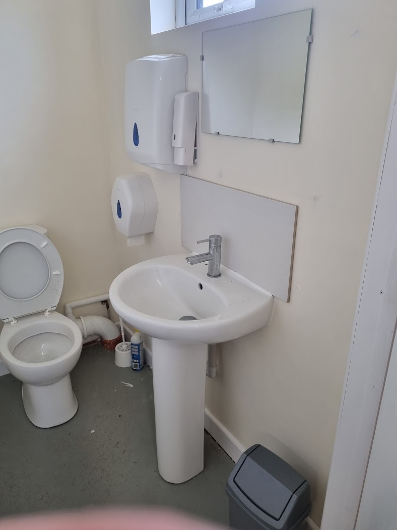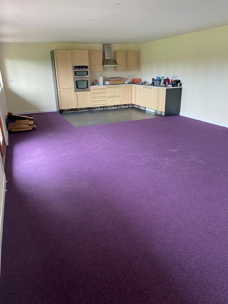 The planners accepted that the building could forego having wall and floor insulation, on the basis that it will only be used in Summer. The reception floor simply consists of carpet tiles glued to the base, with cushion floor (lino) on the kitchen area.
